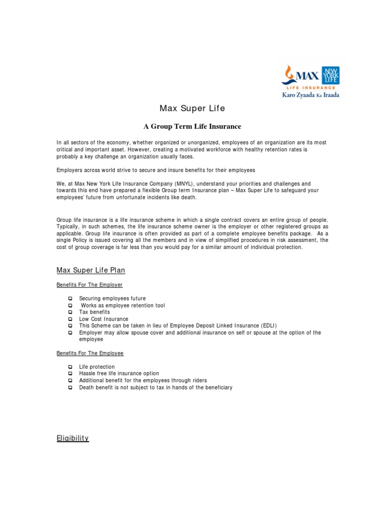 Application Name: Max Super Life Brochure Life Insurance Employee Benefits